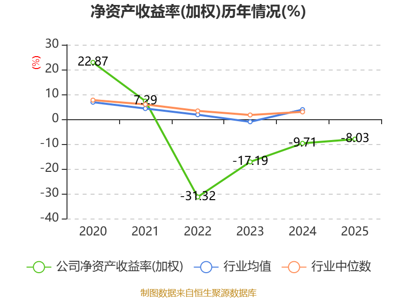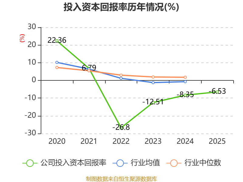 数据显示,2025年公司加权平均净资产收益率为-8.03%,较上年同期上升1.68个百分点。公司2025年投入资本回报率为-6.53%,较上年同期上升1.82个百分点。