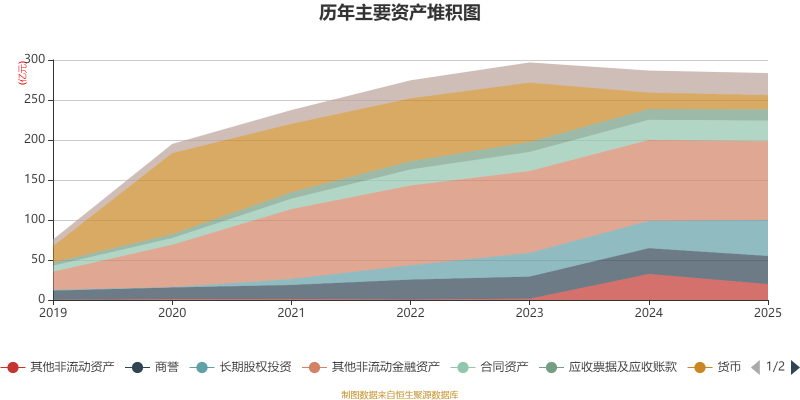 资产重大变化方面,截至2025年末,公司其他非流动资产较上年末减少38.99%,占公司总资产比重下降4.34个百分点;长期股权投资较上年末增加31.37%,占公司总资产比重上升3.92个百分点;固定资产较上年末增加52.63%,占公司总资产比重上升1.47个百分点;商誉较上年末增加9.06%,占公司总资产比重上升1.16个百分点。