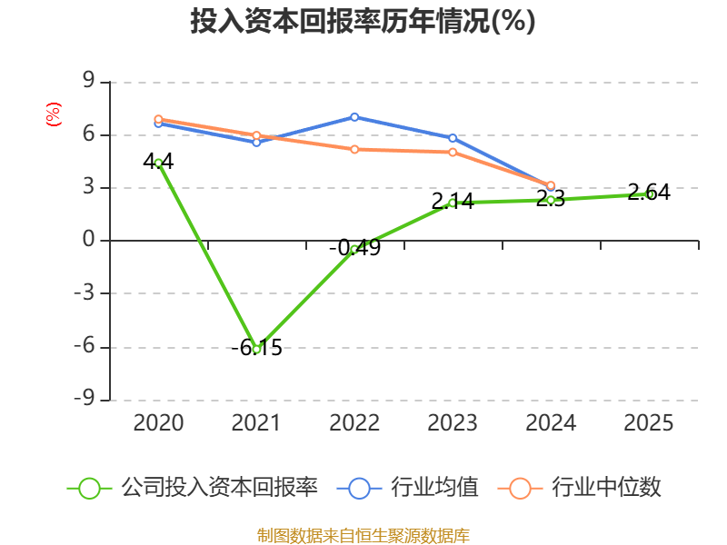 数据显示,2025年公司加权平均净资产收益率为2.24%,较上年同期上升0.82个百分点。公司2025年投入资本回报率为2.64%,较上年同期上升0.34个百分点。