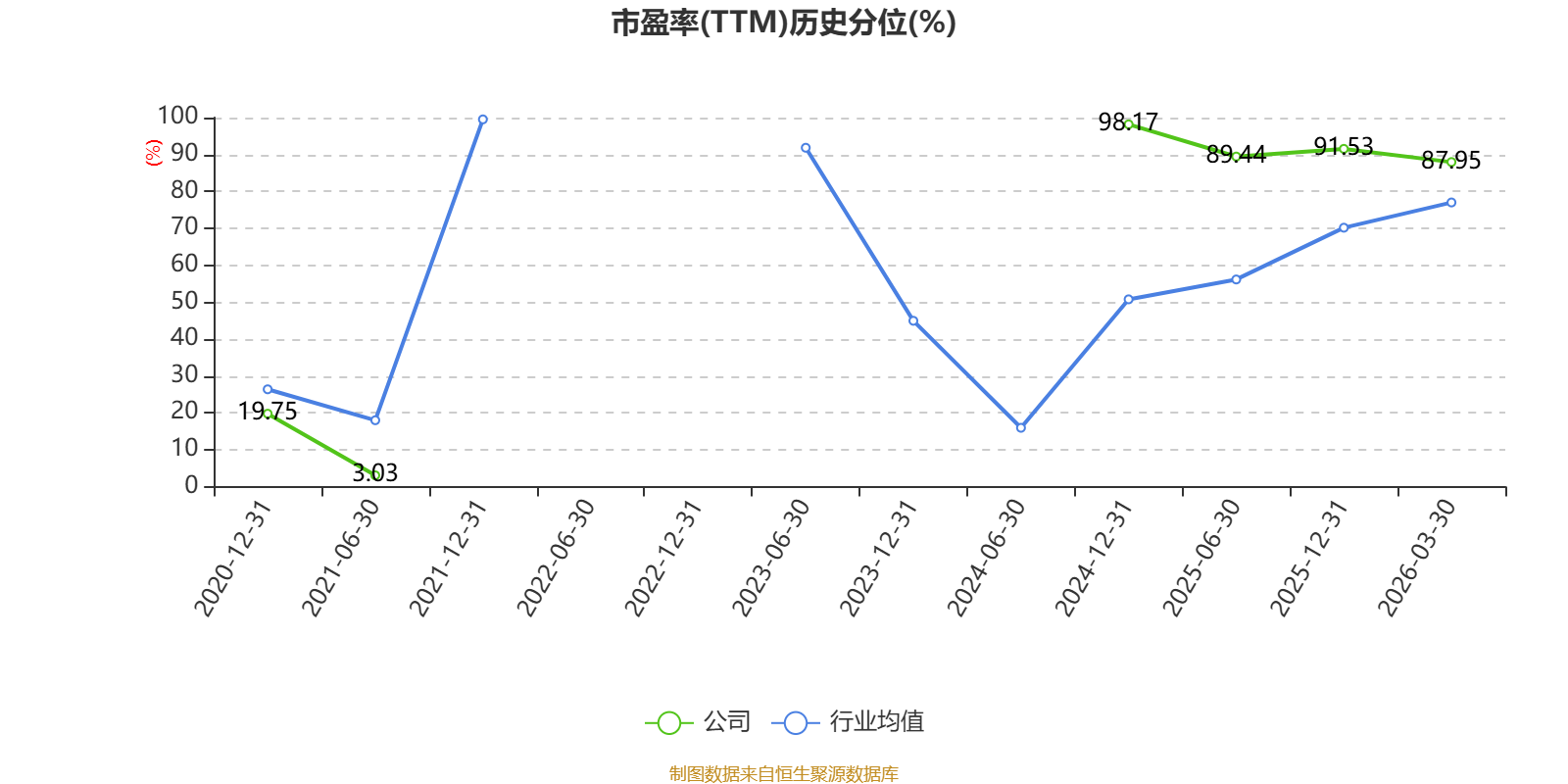 市盈率、市净率为负时,不显示当期分位数,会导致折线图中断。