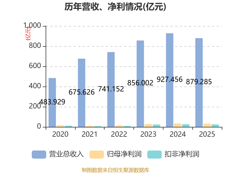 中证智能财讯海信家电(000921)3月31日披露2025年年度报告。2025年,公司实现营业总收入879.28亿元,同比下降5.19%;归母净利润31.87亿元,同比下降4.82%;扣非净利润24.45亿元,同比下降6.18%;经营活动产生的现金流量净额为57.96亿元,同比增长12.94%;报告期内,海信家电基本每股收益为2.33元,加权平均净资产收益率为19.36%。公司2025年度分配预案为:拟向全体股东每10股派现12.65元(含税)。