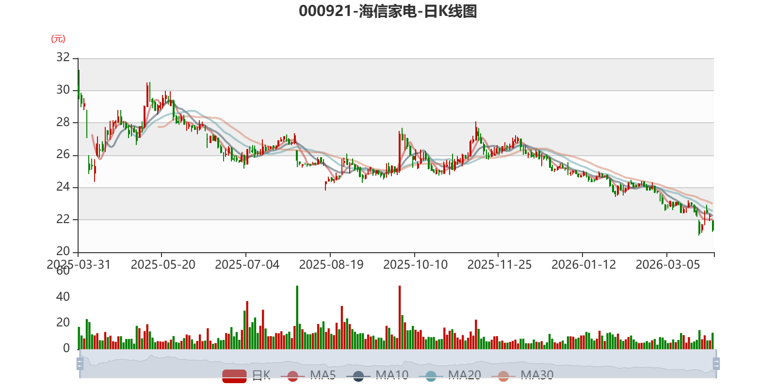 以3月30日收盘价计算,海信家电目前市盈率(TTM)约为9.29倍,市净率(LF)约1.69倍,市销率(TTM)约0.34倍。