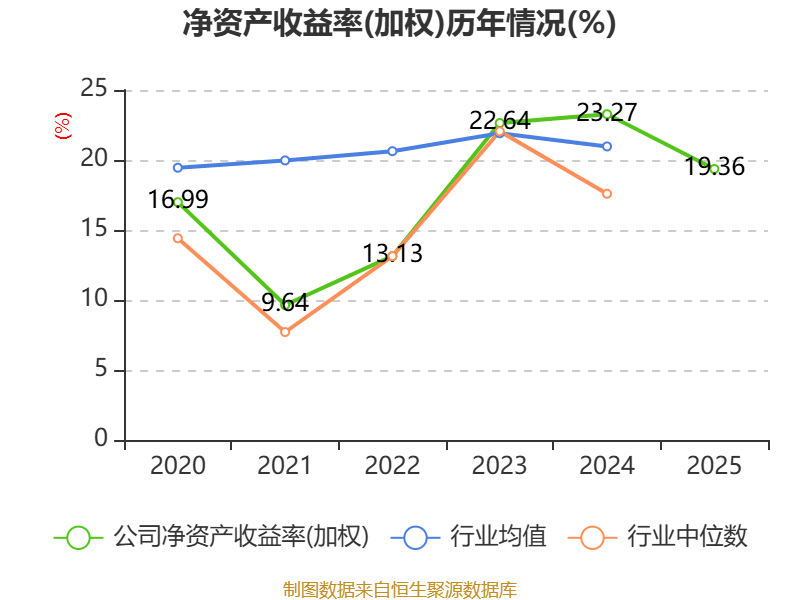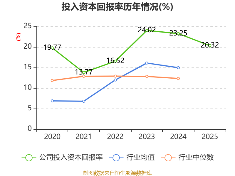 数据显示,2025年公司加权平均净资产收益率为19.36%,较上年同期下降3.91个百分点。公司2025年投入资本回报率为20.32%,较上年同期下降2.93个百分点。