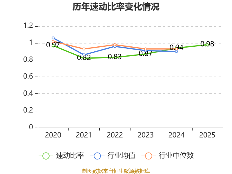 2025年,公司流动比率为1.13,速动比率为0.98。