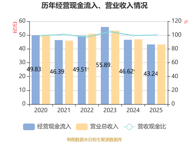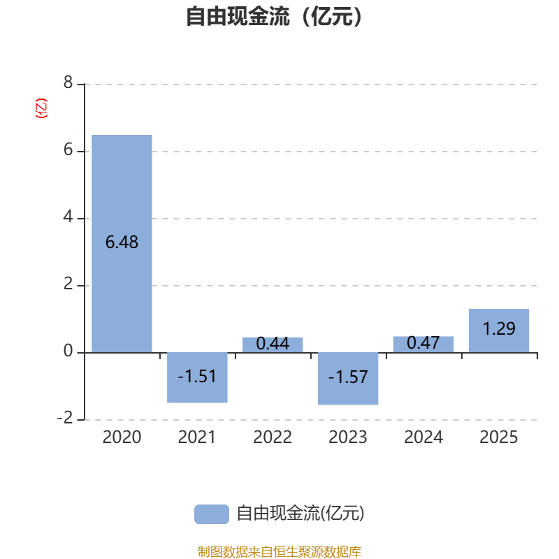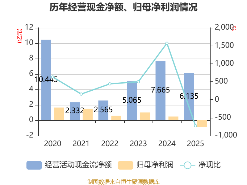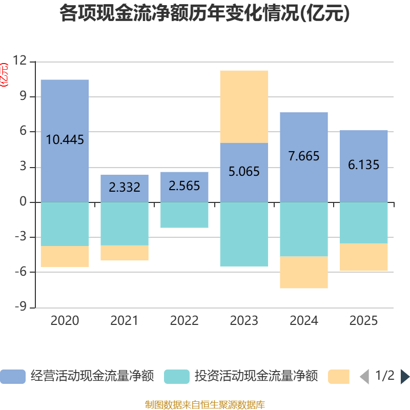 截至2025年,公司经营活动现金流净额为6.14亿元,同比下降19.96%;筹资活动现金流净额-2.32亿元,同比增加3839.64万元;投资活动现金流净额-3.54亿元,上年同期为-4.65亿元。
