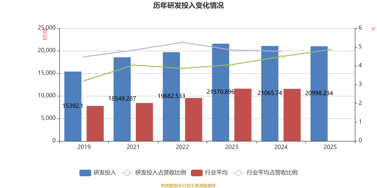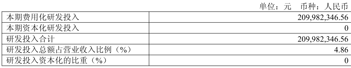 2025年全年,公司研发投入金额为2.1亿元,同比下降0.32%;研发投入占营业收入比例为4.86%,相比上年同期上升0.37个百分点。此外,公司全年研发投入资本化率为0%。