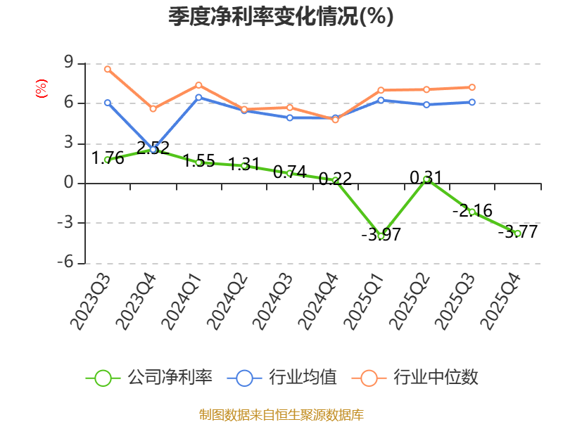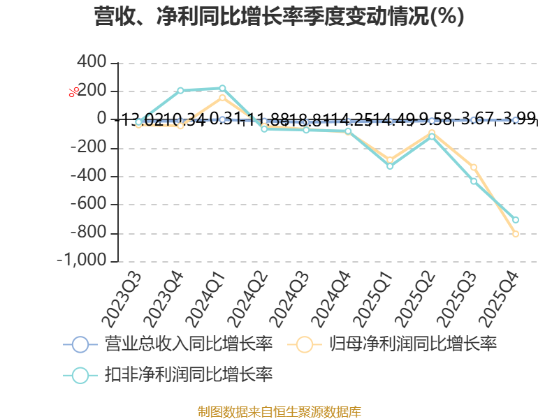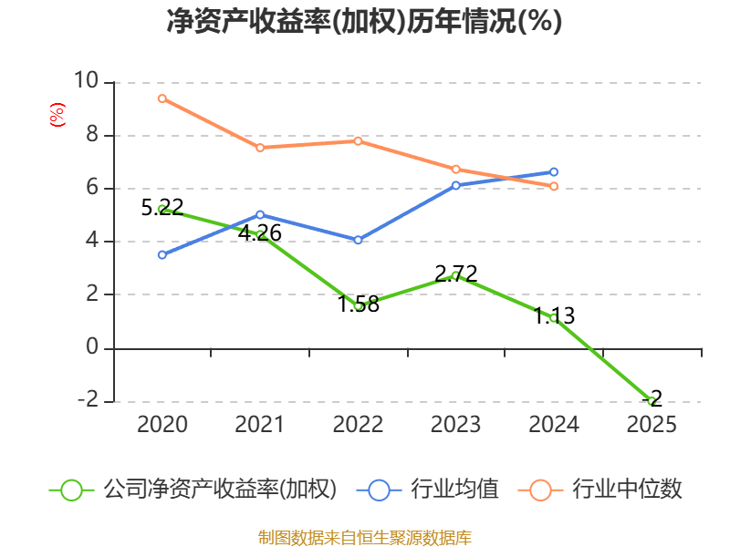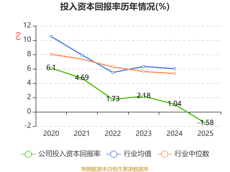 数据显示,2025年公司加权平均净资产收益率为-2%,较上年同期下降3.13个百分点。公司2025年投入资本回报率为-1.58%,较上年同期下降2.62个百分点。