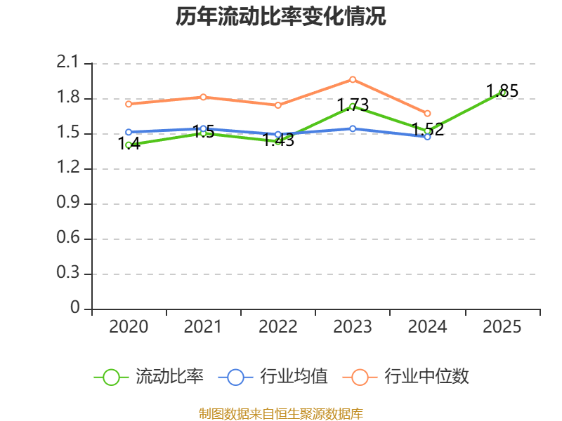 2025年,公司流动比率为1.85,速动比率为1.38。