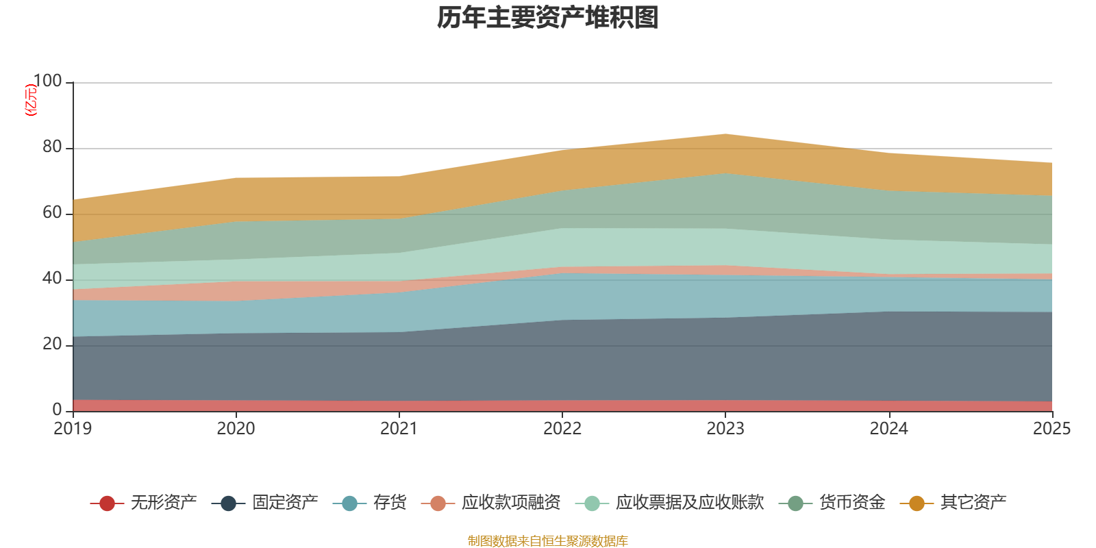 资产重大变化方面,截至2025年末,公司应收票据及应收账款较上年末减少15.82%,占公司总资产比重下降1.69个百分点;固定资产较上年末增加0.24%,占公司总资产比重上升1.44个百分点;应收款项融资较上年末增加106.05%,占公司总资产比重上升1.25个百分点;货币资金较上年末减少0.43%,占公司总资产比重上升0.65个百分点。