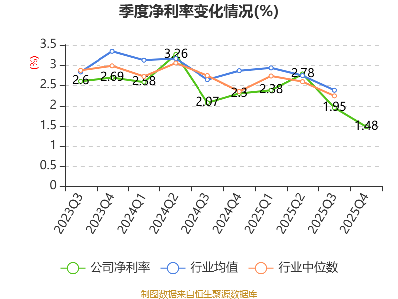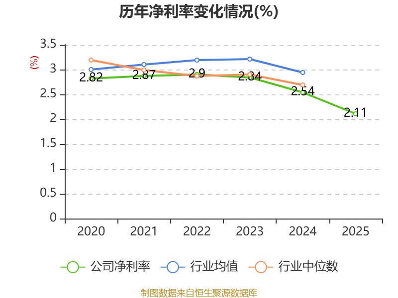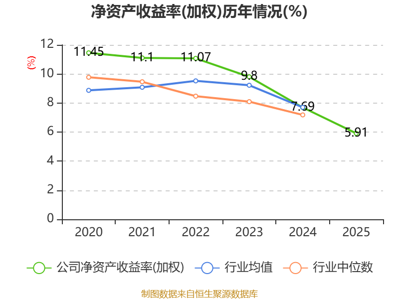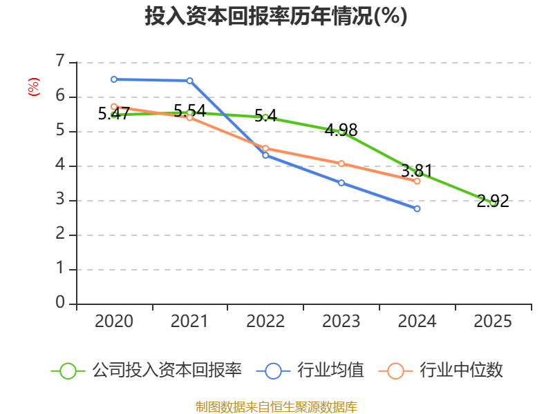 数据显示,2025年公司加权平均净资产收益率为5.91%,较上年同期下降1.78个百分点。公司2025年投入资本回报率为2.92%,较上年同期下降0.89个百分点。