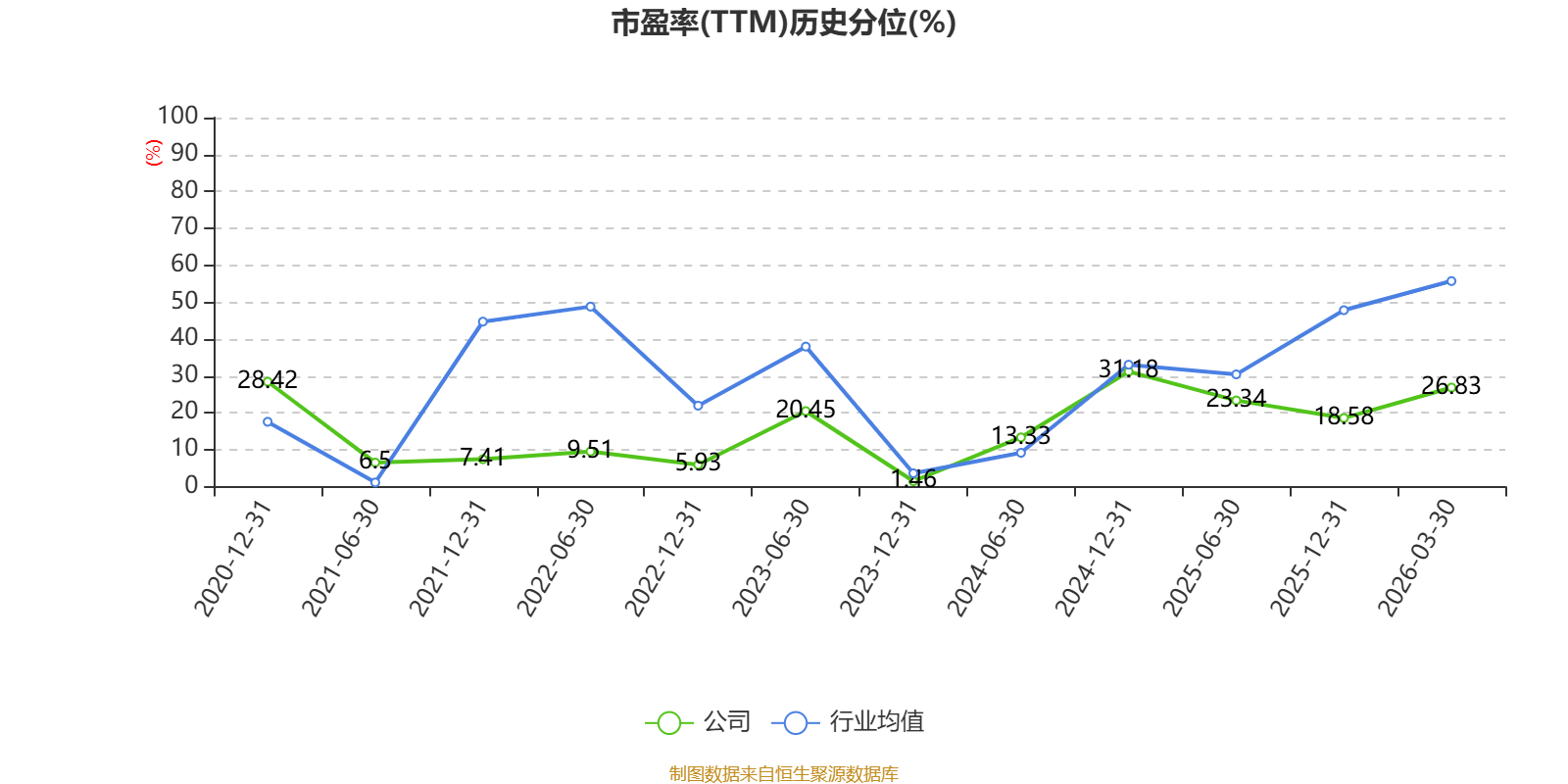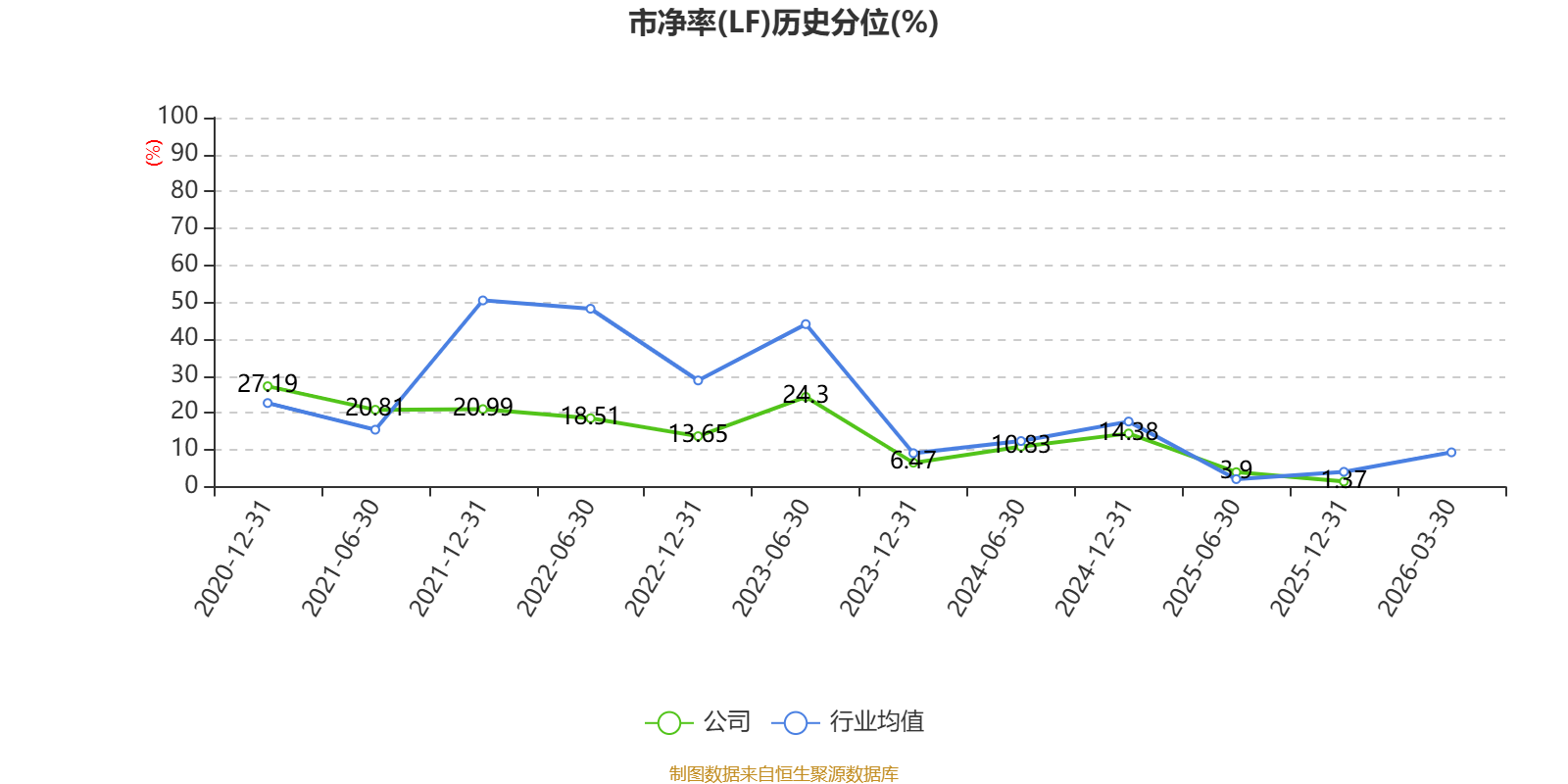 市盈率、市净率为负时,不显示当期分位数,会导致折线图中断。