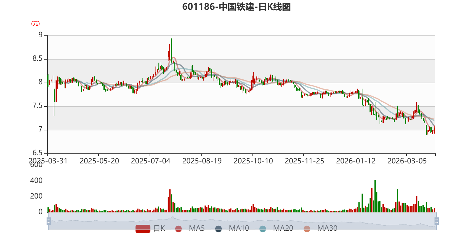 以3月30日收盘价计算,中国铁建目前市盈率(TTM)约为5.21倍,市净率(LF)约0.28倍,市销率(TTM)约0.09倍。