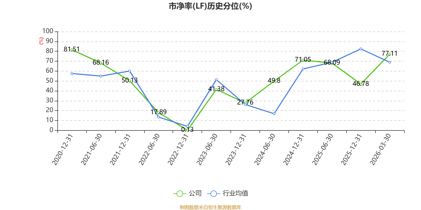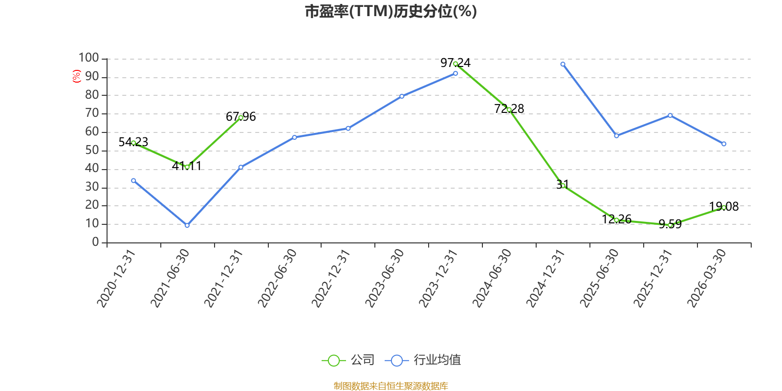 市盈率、市净率为负时,不显示当期分位数,会导致折线图中断。
