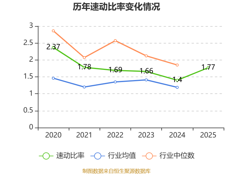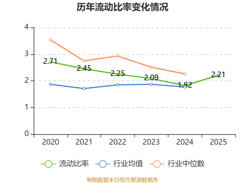 2025年,公司流动比率为2.21,速动比率为1.77。
