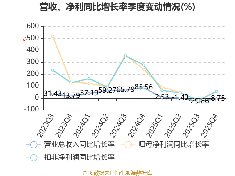 负债重大变化方面,截至2025年末,公司应付票据及应付账款较上年末减少11.42%,占公司总资产比重下降4.03个百分点;短期借款较上年末增加57.49%,占公司总资产比重上升2.6个百分点;应付职工薪酬较上年末减少43.03%,占公司总资产比重下降1.95个百分点;预计负债较上年末减少100%,占公司总资产比重下降1.31个百分点。
