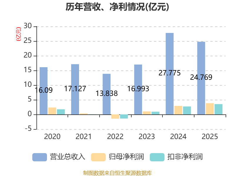 中证智能财讯锐明技术(002970)3月31日披露2025年年度报告。2025年,公司实现营业总收入24.77亿元,同比下降10.82%;归母净利润3.83亿元,同比增长31.95%;扣非净利润3.5亿元,同比增长29.58%;经营活动产生的现金流量净额为3.98亿元,同比下降5.50%;报告期内,锐明技术基本每股收益为2.15元,加权平均净资产收益率为20.29%。公司2025年度分配预案为:拟向全体股东每10股派现6元(含税)。