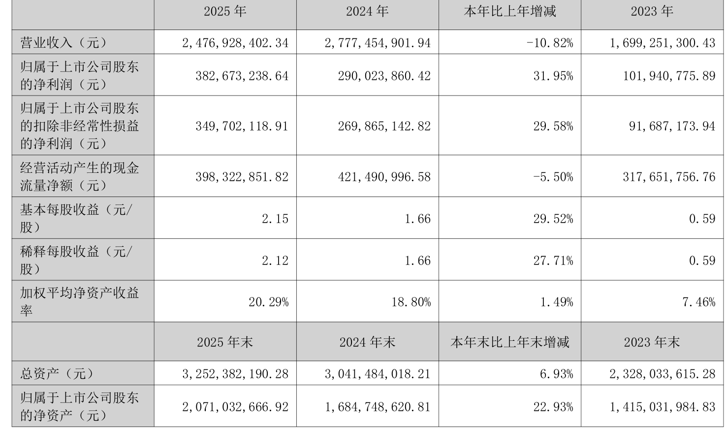 数据显示,2025年公司加权平均净资产收益率为20.29%,较上年同期上升1.49个百分点。公司2025年投入资本回报率为17.93%,较上年同期上升2.54个百分点。