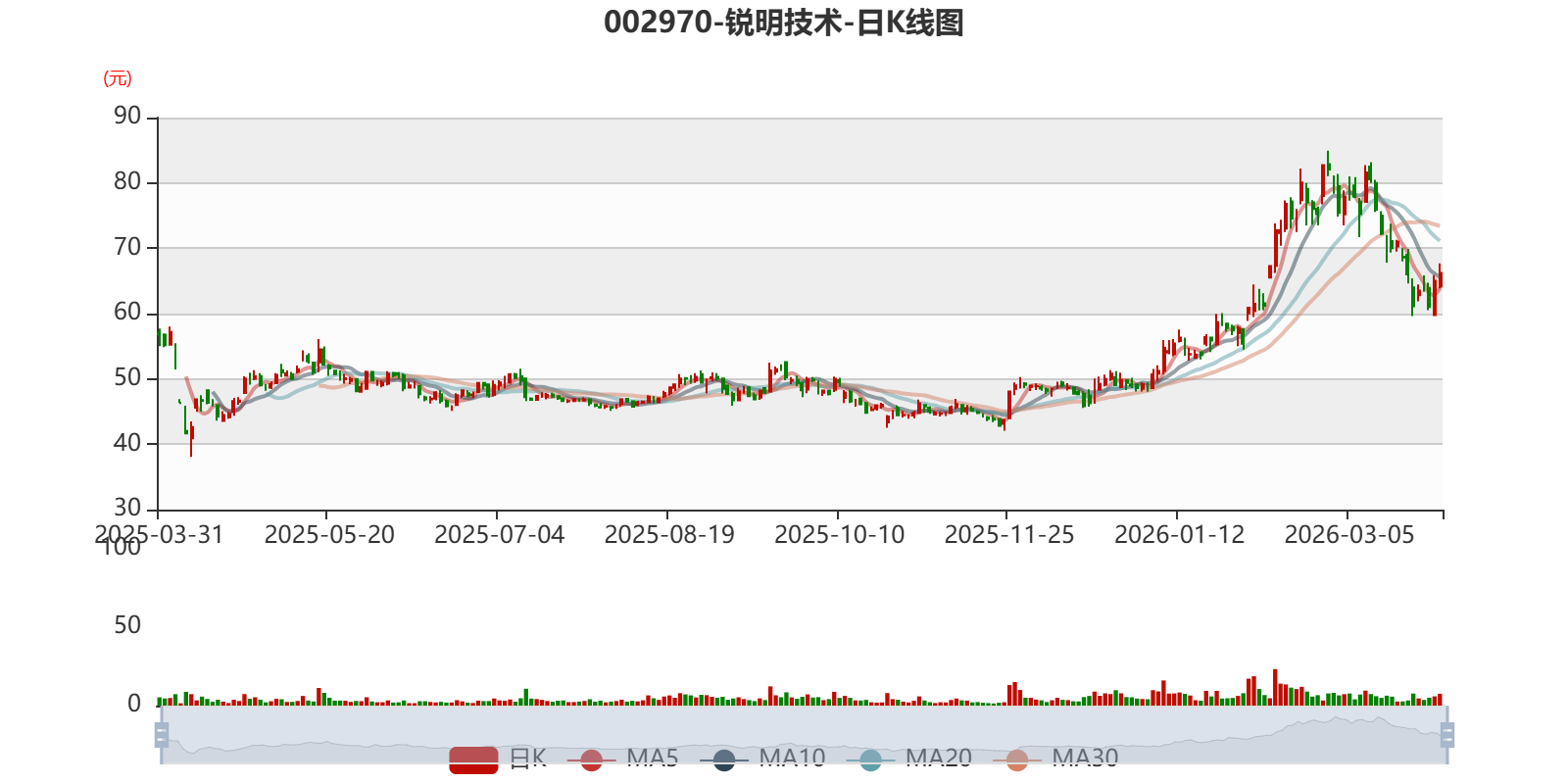以3月30日收盘价计算,锐明技术目前市盈率(TTM)约为31.25倍,市净率(LF)约5.77倍,市销率(TTM)约4.83倍。