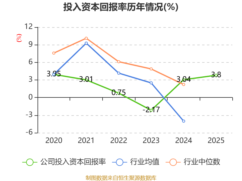 数据显示,2025年公司加权平均净资产收益率为3.87%,较上年同期上升0.47个百分点。公司2025年投入资本回报率为3.8%,较上年同期上升0.76个百分点。