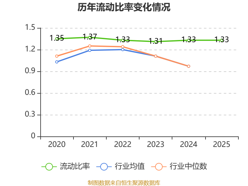 2025年,公司流动比率为1.33,速动比率为0.95。
