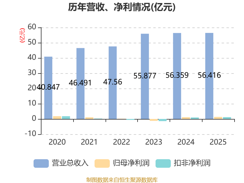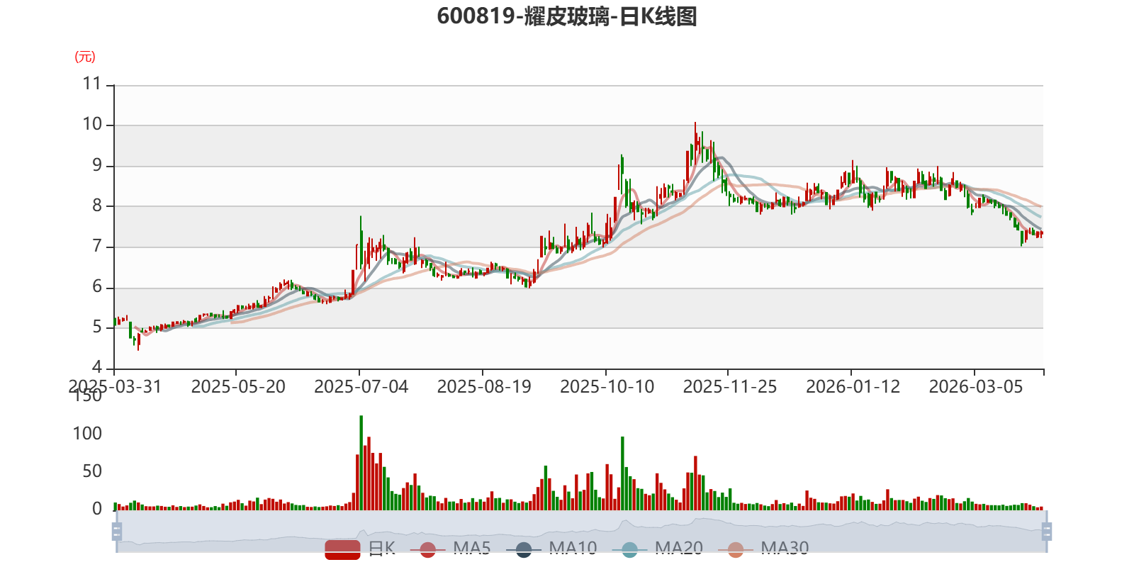 中证智能财讯耀皮玻璃(600819)3月31日披露2025年年度报告。2025年,公司实现营业总收入56.42亿元,同比增长0.10%;归母净利润1.36亿元,同比增长16.74%;扣非净利润1.18亿元,同比增长22.77%;经营活动产生的现金流量净额为6.88亿元,同比增长1.96%;报告期内,耀皮玻璃基本每股收益为0.14元,加权平均净资产收益率为3.87%。公司2025年度分配预案为:拟向全体股东每10股派现0.15元(含税)。
