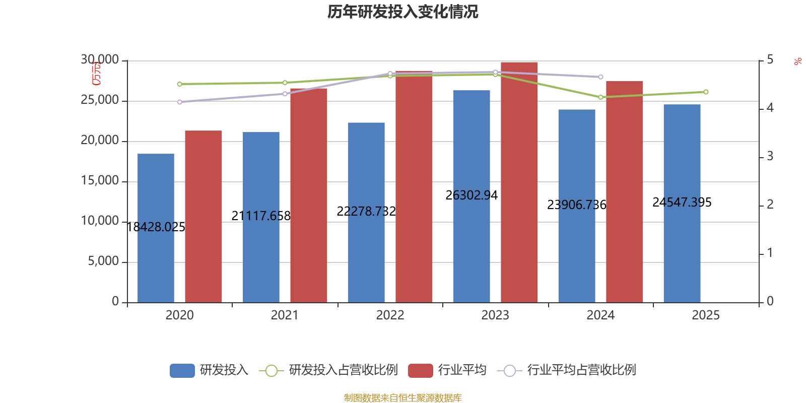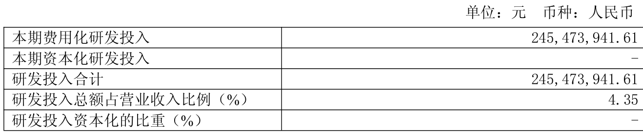 2025年全年,公司研发投入金额为2.45亿元,同比增长2.68%;研发投入占营业收入比例为4.35%,相比上年同期上升0.11个百分点。此外,公司全年研发投入资本化率为0%。