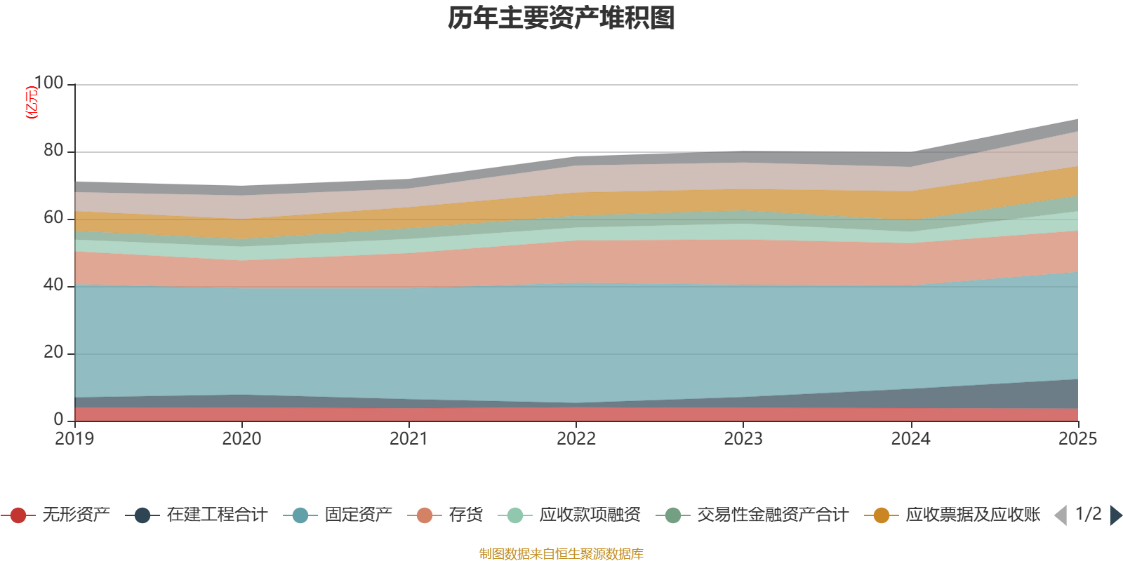 资产重大变化方面,截至2025年末,公司固定资产较上年末增加3.81%,占公司总资产比重下降2.93个百分点;在建工程合计较上年末增加51.81%,占公司总资产比重上升2.54个百分点;货币资金较上年末增加43.12%,占公司总资产比重上升2.49个百分点;应收款项融资较上年末增加70.15%,占公司总资产比重上升2.18个百分点。