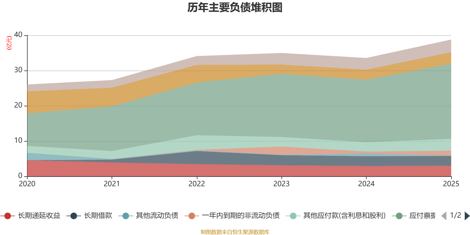负债重大变化方面,截至2025年末,公司应付票据及应付账款较上年末增加20.45%,占公司总资产比重上升1.6个百分点;一年内到期的非流动负债较上年末增加143.68%,占公司总资产比重上升0.82个百分点;其他流动负债较上年末减少81.65%,占公司总资产比重下降0.82个百分点;其他应付款(含利息和股利)较上年末增加27.06%,占公司总资产比重上升0.43个百分点。