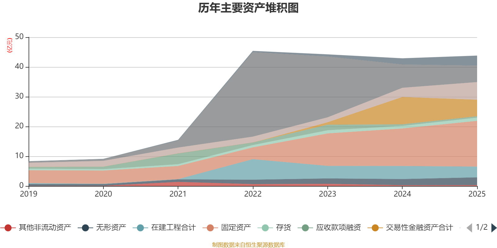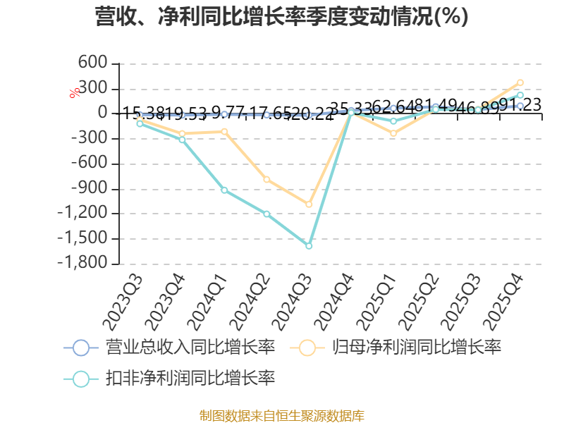 资产重大变化方面,截至2025年末,公司交易性金融资产合计较上年末减少39.54%,占公司总资产比重下降8.72个百分点;应收票据及应收账款较上年末增加90.87%,占公司总资产比重上升6.29个百分点;固定资产较上年末增加21.9%,占公司总资产比重上升5.7个百分点;货币资金较上年末减少29.03%,占公司总资产比重下降5.56个百分点。