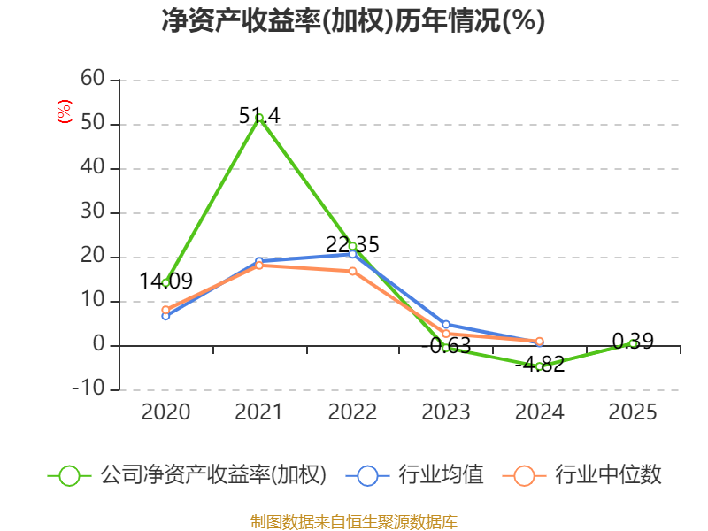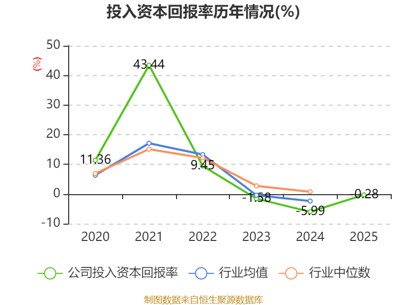 数据显示,2025年公司加权平均净资产收益率为0.39%,较上年同期上升5.21个百分点。公司2025年投入资本回报率为-0.28%,较上年同期上升5.71个百分点。