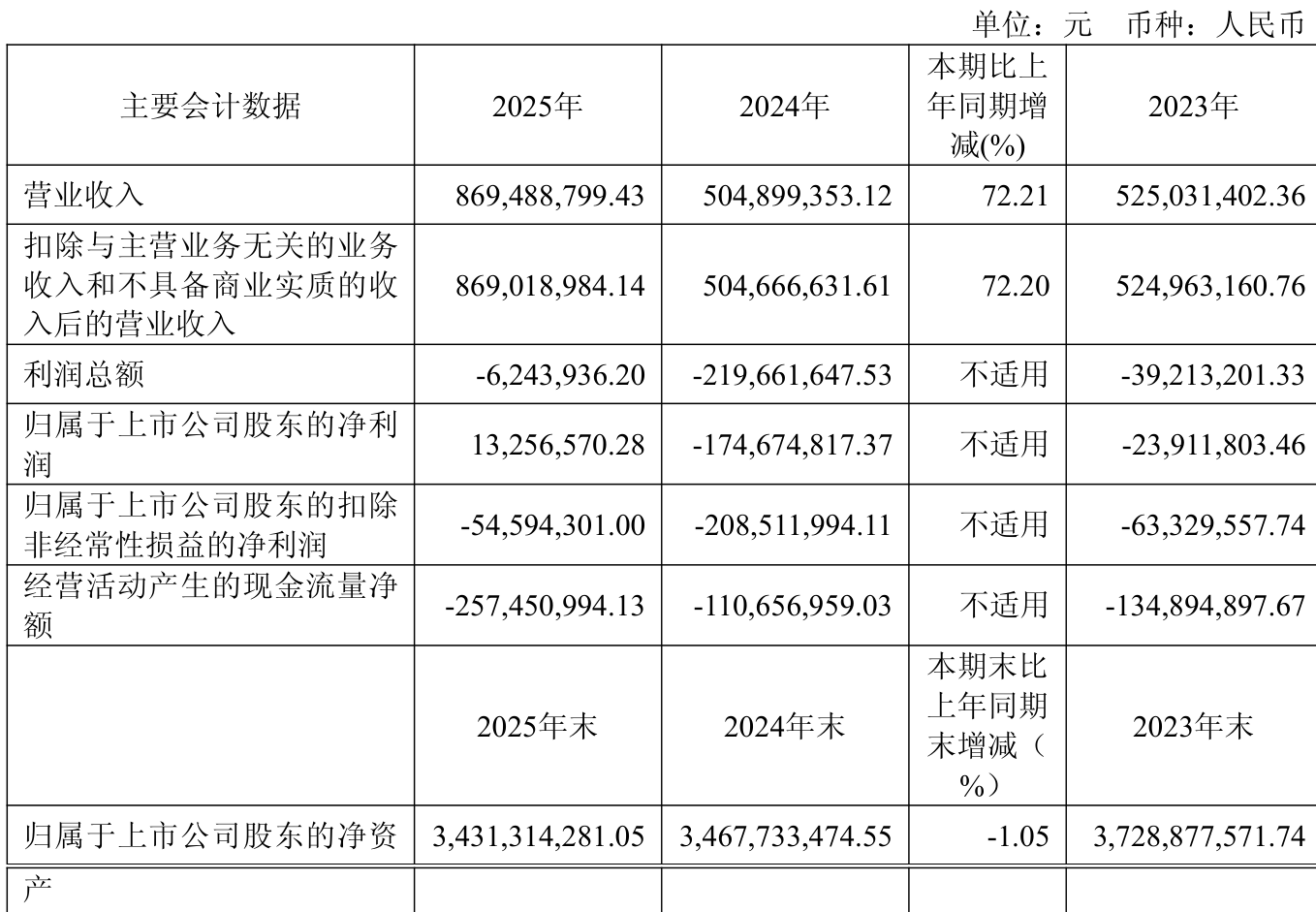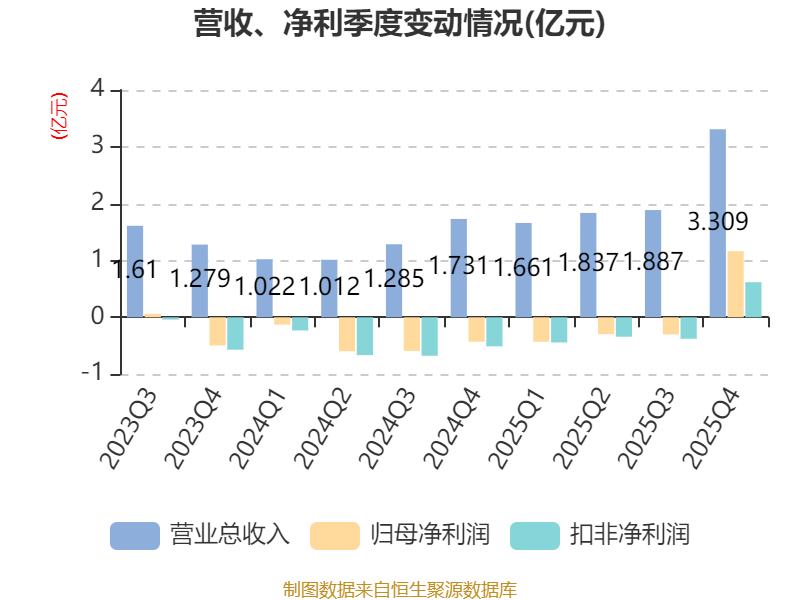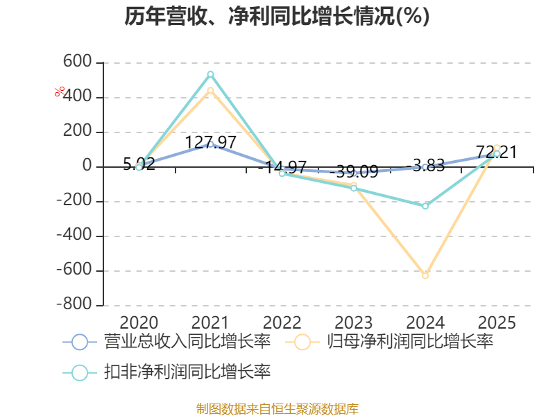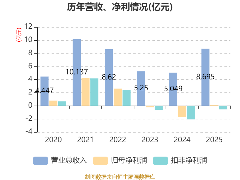 中证智能财讯华盛锂电(688353)3月31日披露2025年年度报告。2025年,公司实现营业总收入8.69亿元,同比增长72.21%;归母净利润1325.66万元,同比扭亏;扣非净利润亏损5459.43万元,上年同期亏损2.09亿元;经营活动产生的现金流量净额为-2.57亿元,上年同期为-1.11亿元;报告期内,华盛锂电基本每股收益为0.09元,加权平均净资产收益率为0.39%。