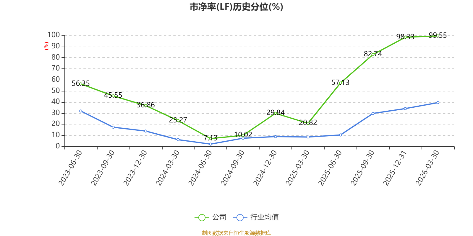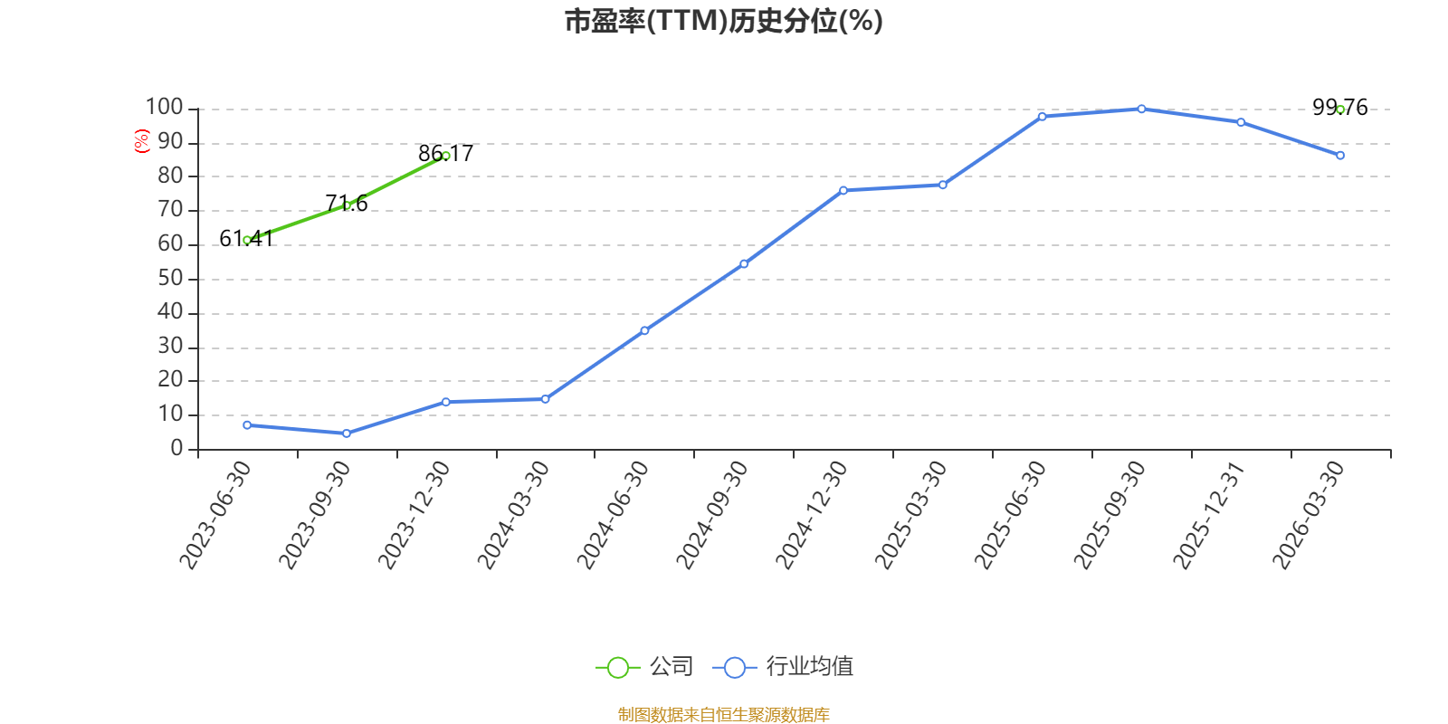 市盈率、市净率为负时,不显示当期分位数,会导致折线图中断。