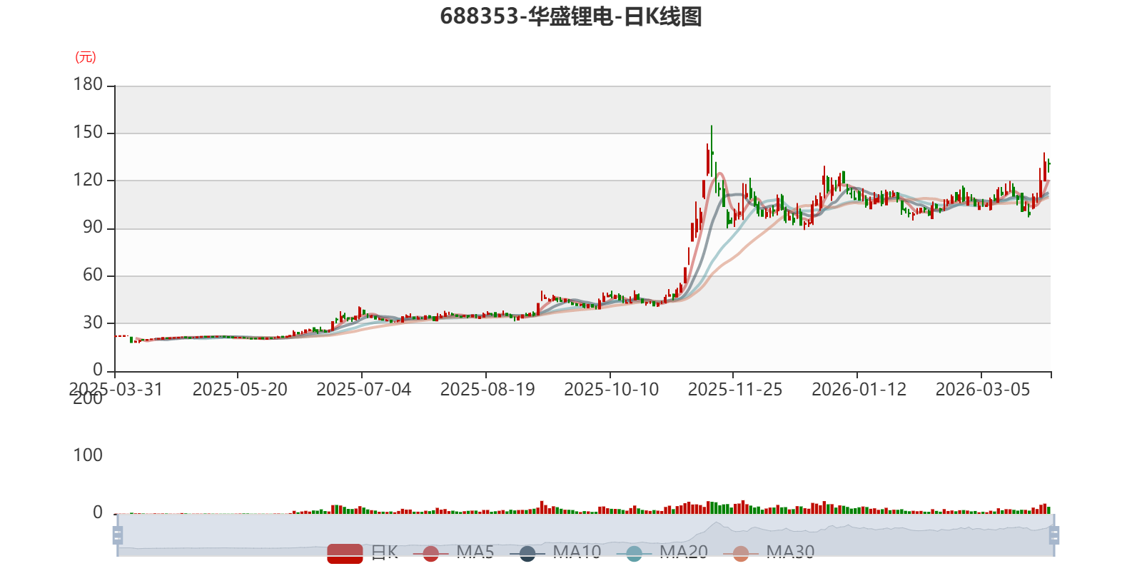 以3月30日收盘价计算,华盛锂电目前市盈率(TTM)约为1573.51倍,市净率(LF)约6.08倍,市销率(TTM)约23.99倍。