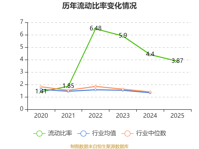 2025年,公司流动比率为3.87,速动比率为3.65。