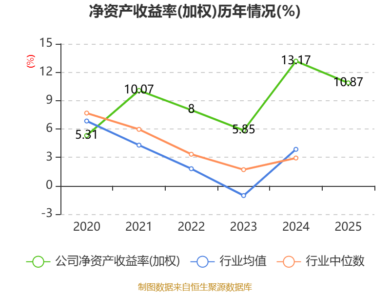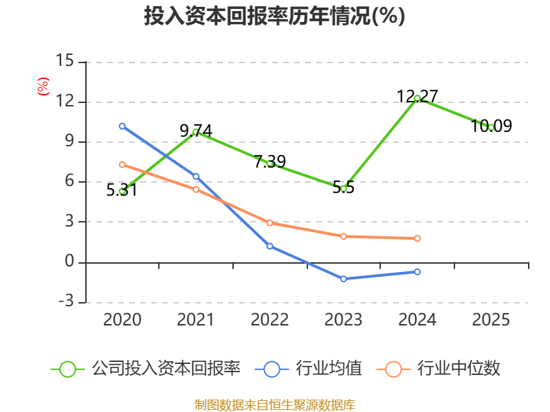 数据显示,2025年公司加权平均净资产收益率为10.87%,较上年同期下降2.3个百分点。公司2025年投入资本回报率为10.09%,较上年同期下降2.18个百分点。
