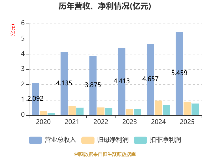 中证智能财讯维宏股份(300508)3月31日披露2025年年度报告。2025年,公司实现营业总收入5.46亿元,同比增长17.22%;归母净利润8781.05万元,同比下降7.98%;扣非净利润7610.25万元,同比增长15.83%;经营活动产生的现金流量净额为8973.54万元,同比增长22.39%;报告期内,维宏股份基本每股收益为0.8109元,加权平均净资产收益率为10.87%。公司2025年度分配预案为:拟向全体股东每10股派现1.61元(含税)。