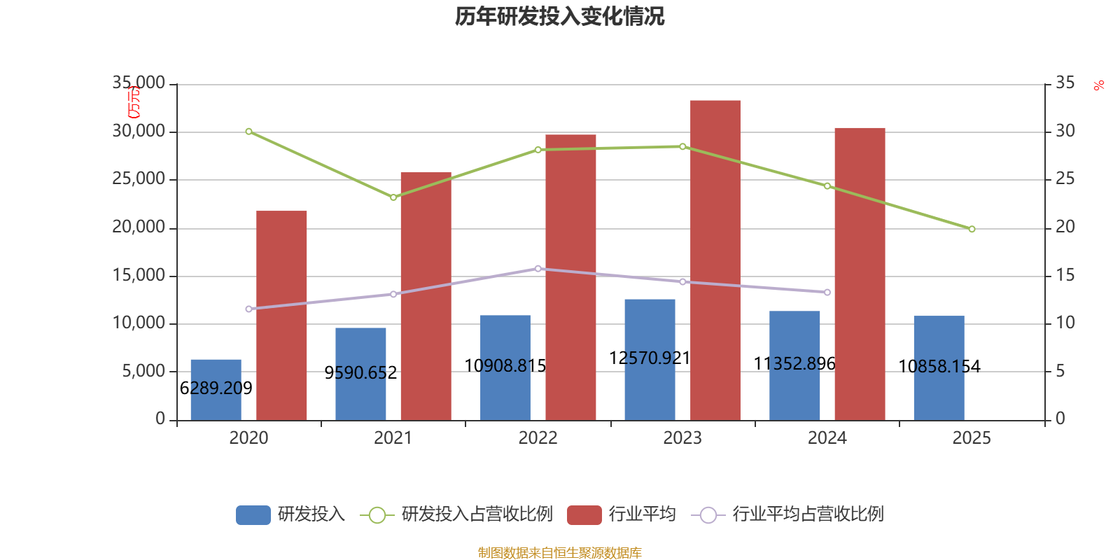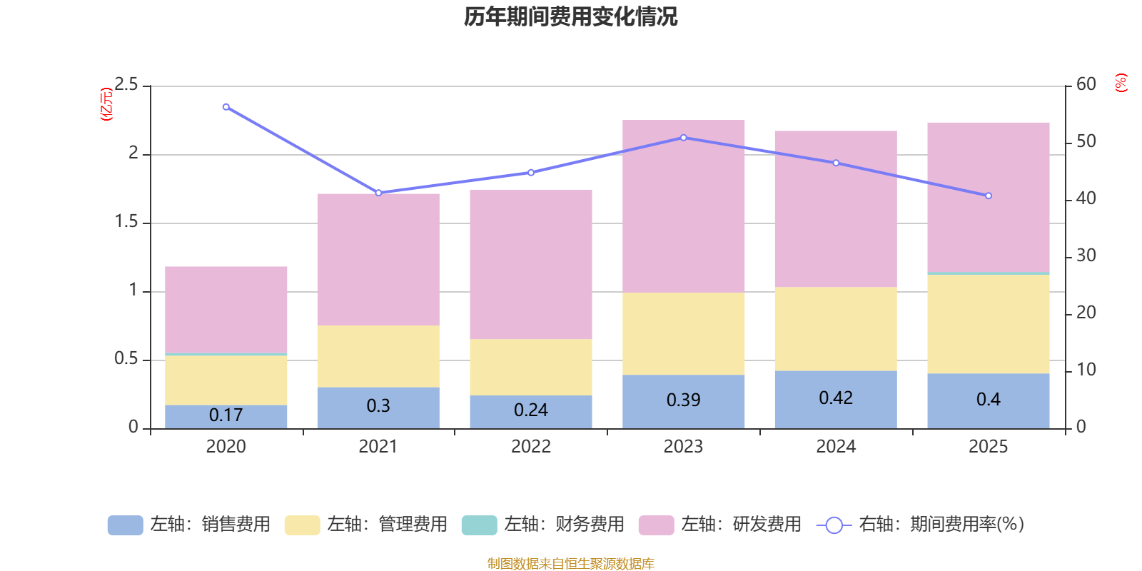 2025年全年,公司研发投入金额为1.09亿元,同比下降4.36%;研发投入占营业收入比例为19.89%,相比上年同期下降4.49个百分点。此外,公司全年研发投入资本化率为0%。
