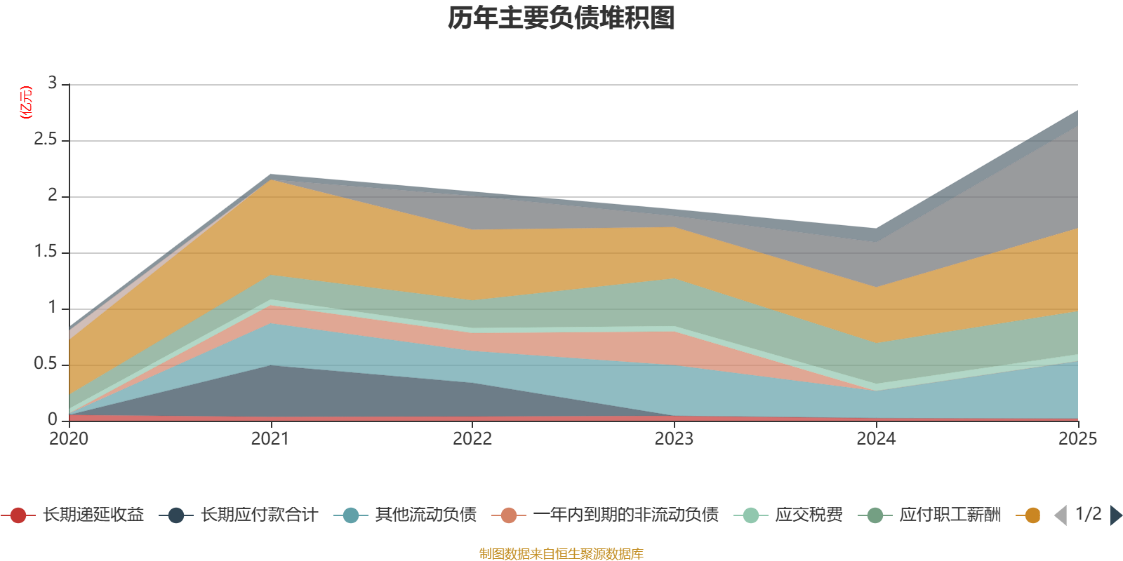 负债重大变化方面,截至2025年末,公司短期借款较上年末增加127.88%,占公司总资产比重上升3.76个百分点;其他流动负债较上年末增加111.65%,占公司总资产比重上升1.93个百分点;应付票据及应付账款较上年末增加48.97%,占公司总资产比重上升1.23个百分点;应付职工薪酬较上年末增加6.03%,占公司总资产比重下降0.47个百分点。