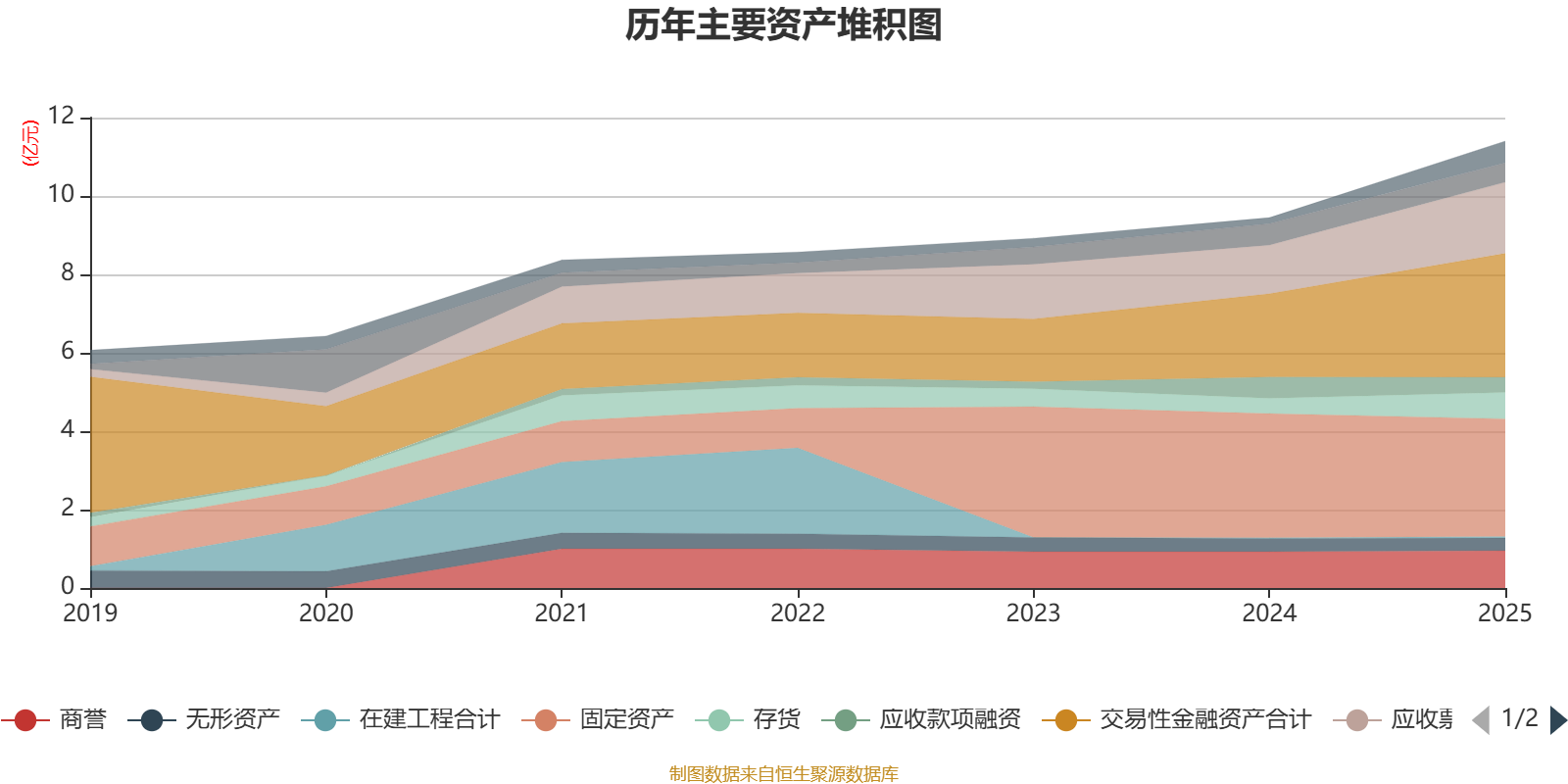 资产重大变化方面,截至2025年末,公司固定资产较上年末减少5.18%,占公司总资产比重下降7.19个百分点;交易性金融资产合计较上年末增加48.98%,占公司总资产比重上升5.27个百分点;长期股权投资占公司总资产的3.12%,上年末为0;应收票据及应收账款较上年末增加46.08%,占公司总资产比重上升2.76个百分点。