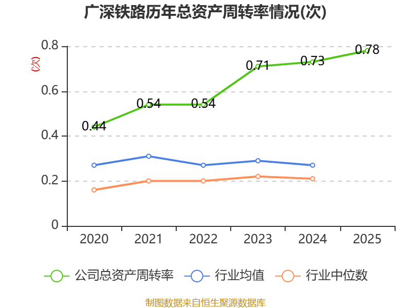 中证智能财讯广深铁路(601333)3月31日披露2025年年度报告。2025年,公司实现营业总收入286.86亿元,同比增长5.89%;归母净利润14.26亿元,同比增长34.49%;扣非净利润10.62亿元,同比增长3.85%;经营活动产生的现金流量净额为34.62亿元,同比增长27.72%;报告期内,广深铁路基本每股收益为0.2013元,加权平均净资产收益率为5.16%。公司2025年度分配预案为:拟向全体股东每10股派现0.9元(含税)。