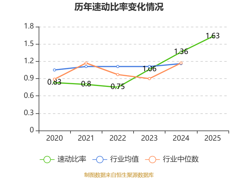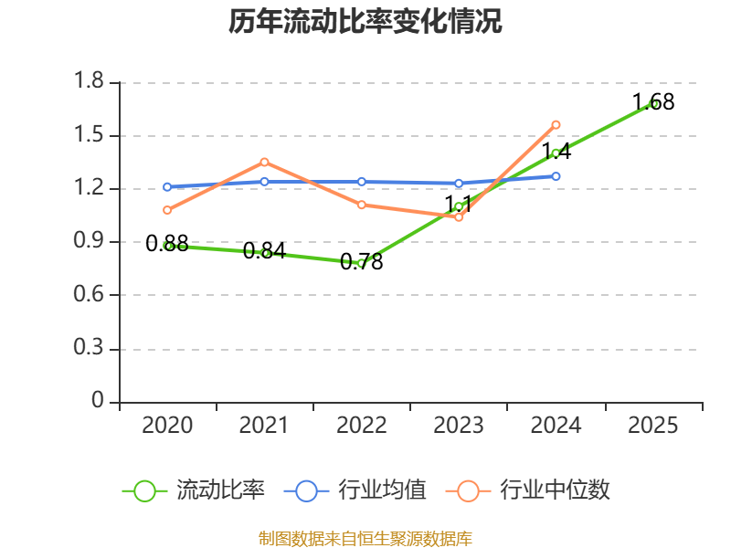 2025年,公司流动比率为1.68,速动比率为1.63。