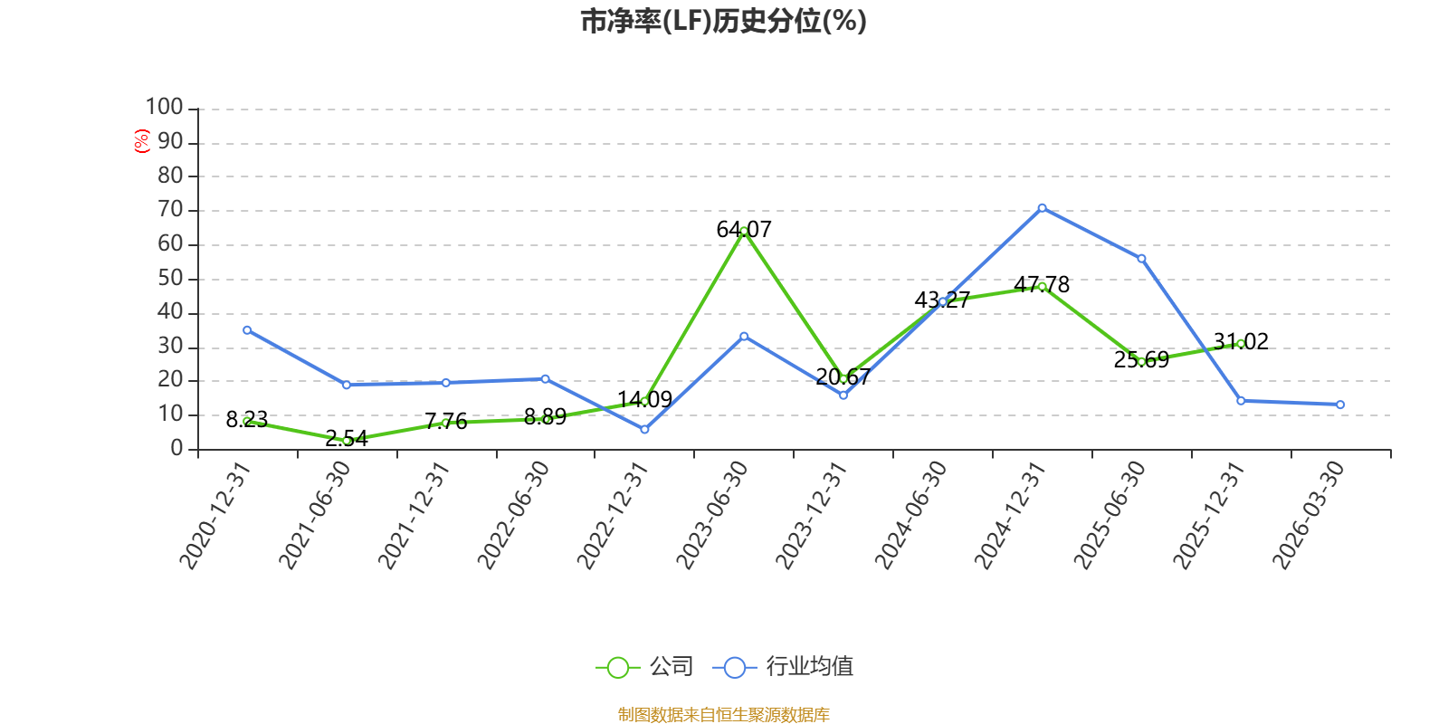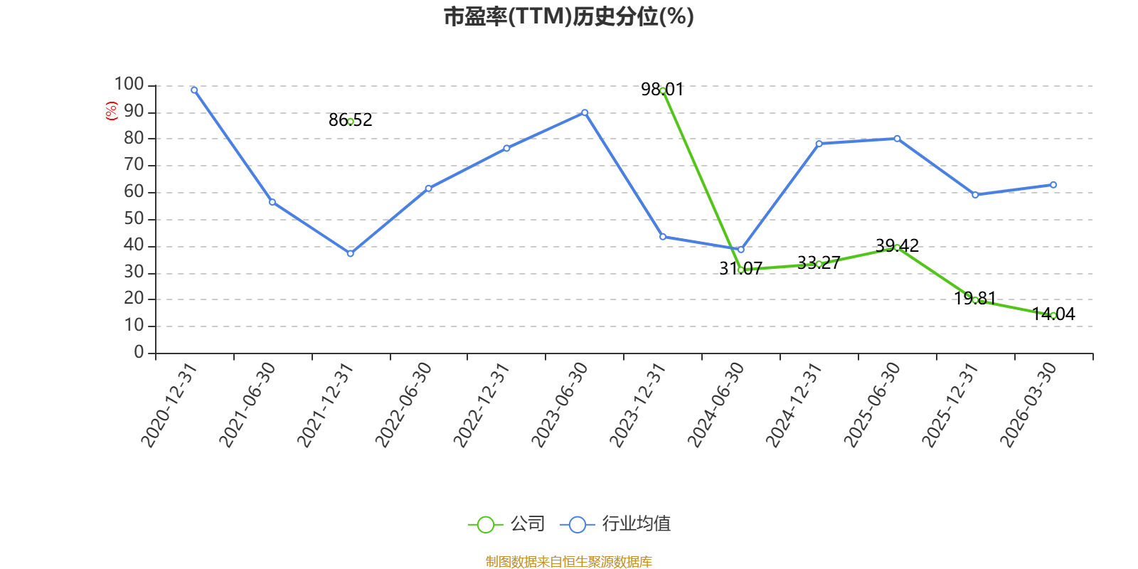 市盈率、市净率为负时,不显示当期分位数,会导致折线图中断。