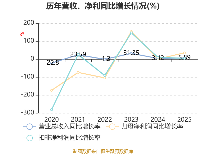 资产重大变化方面,截至2025年末,公司货币资金较上年末增加114.23%,占公司总资产比重上升5.93个百分点;固定资产较上年末减少4.76%,占公司总资产比重下降3.44个百分点;应收票据及应收账款较上年末减少17.76%,占公司总资产比重下降3.12个百分点;在建工程合计较上年末增加71.95%,占公司总资产比重上升0.8个百分点。