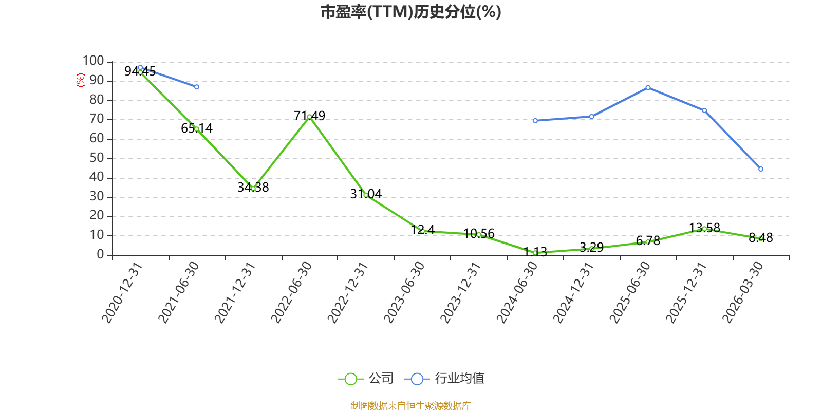 市盈率、市净率为负时,不显示当期分位数,会导致折线图中断。