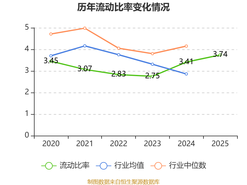 2025年,公司流动比率为3.74,速动比率为3.35。
