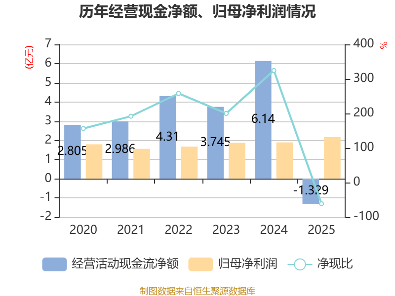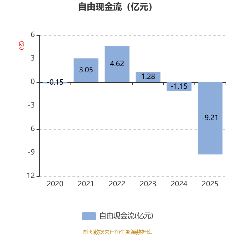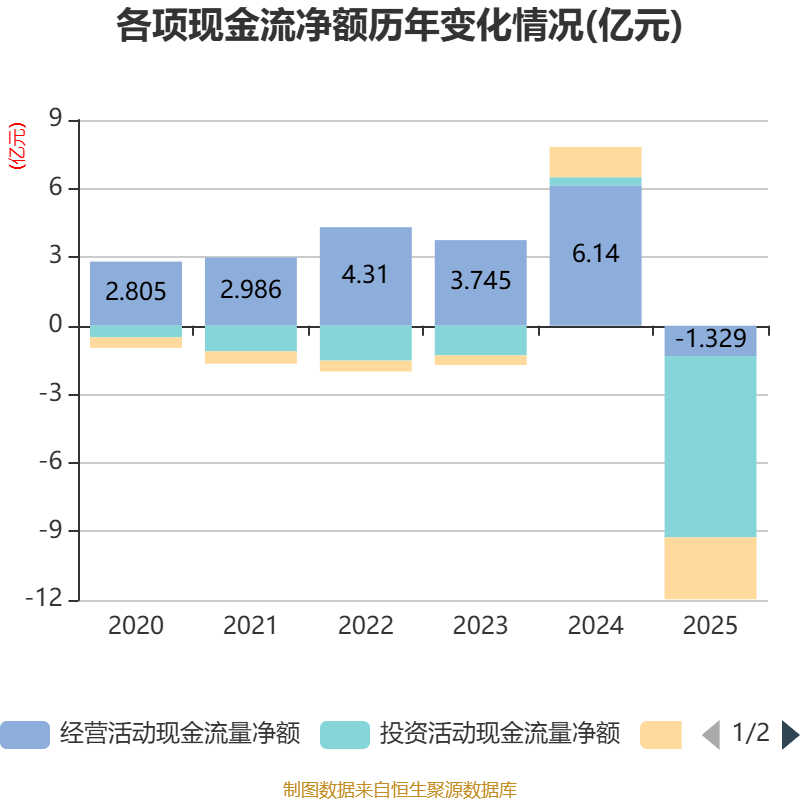 截至2025年,公司经营活动现金流净额为-1.33亿元,同比减少7.47亿元;筹资活动现金流净额-2.71亿元,同比减少4.04亿元;投资活动现金流净额-7.93亿元,上年同期为3555.91万元。