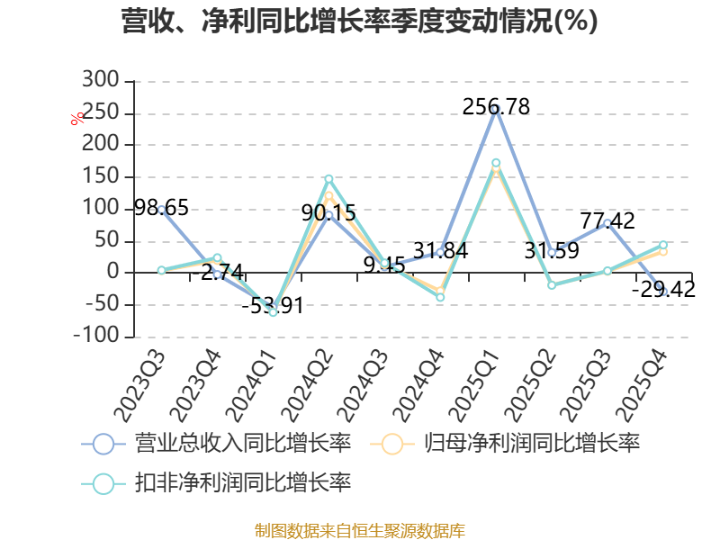 资产重大变化方面,截至2025年末,公司货币资金较上年末减少38.42%,占公司总资产比重下降14.67个百分点;固定资产较上年末增加73.21%,占公司总资产比重上升12.58个百分点;应收票据及应收账款较上年末增加38.33%,占公司总资产比重上升2.26个百分点;使用权资产较上年末减少85.36%,占公司总资产比重下降1.41个百分点。