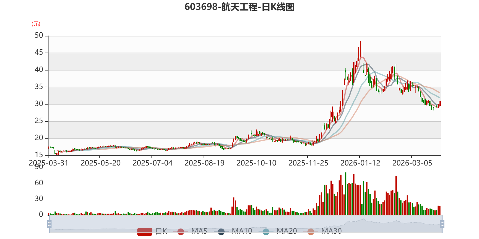 以3月30日收盘价计算,航天工程目前市盈率(TTM)约为76.35倍,市净率(LF)约4.76倍,市销率(TTM)约3.92倍。