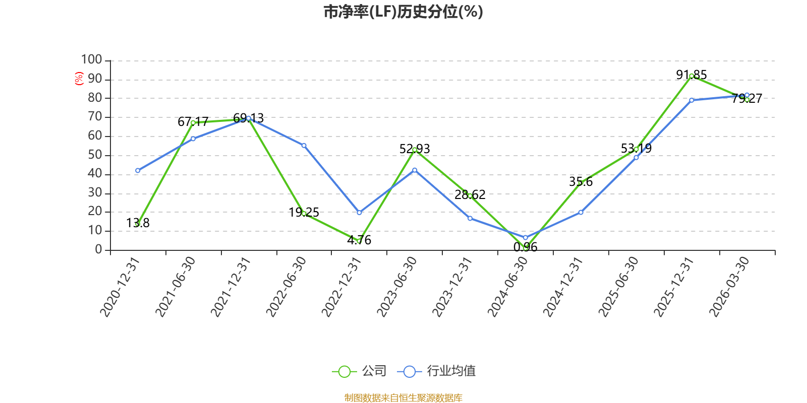 市盈率、市净率为负时,不显示当期分位数,会导致折线图中断。