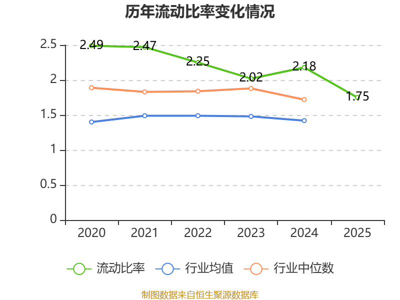 2025年,公司流动比率为1.75,速动比率为1.62。